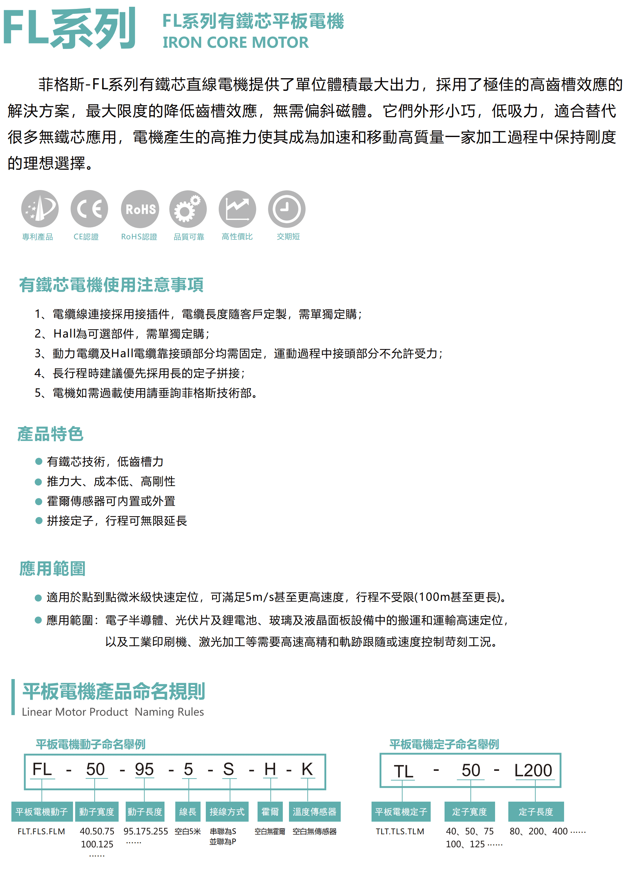 FLM系列為有鐵芯直線電機,單位體積超大推力,結構小巧緊湊,低吸力,適應于對馬達推力要求較高的應用。