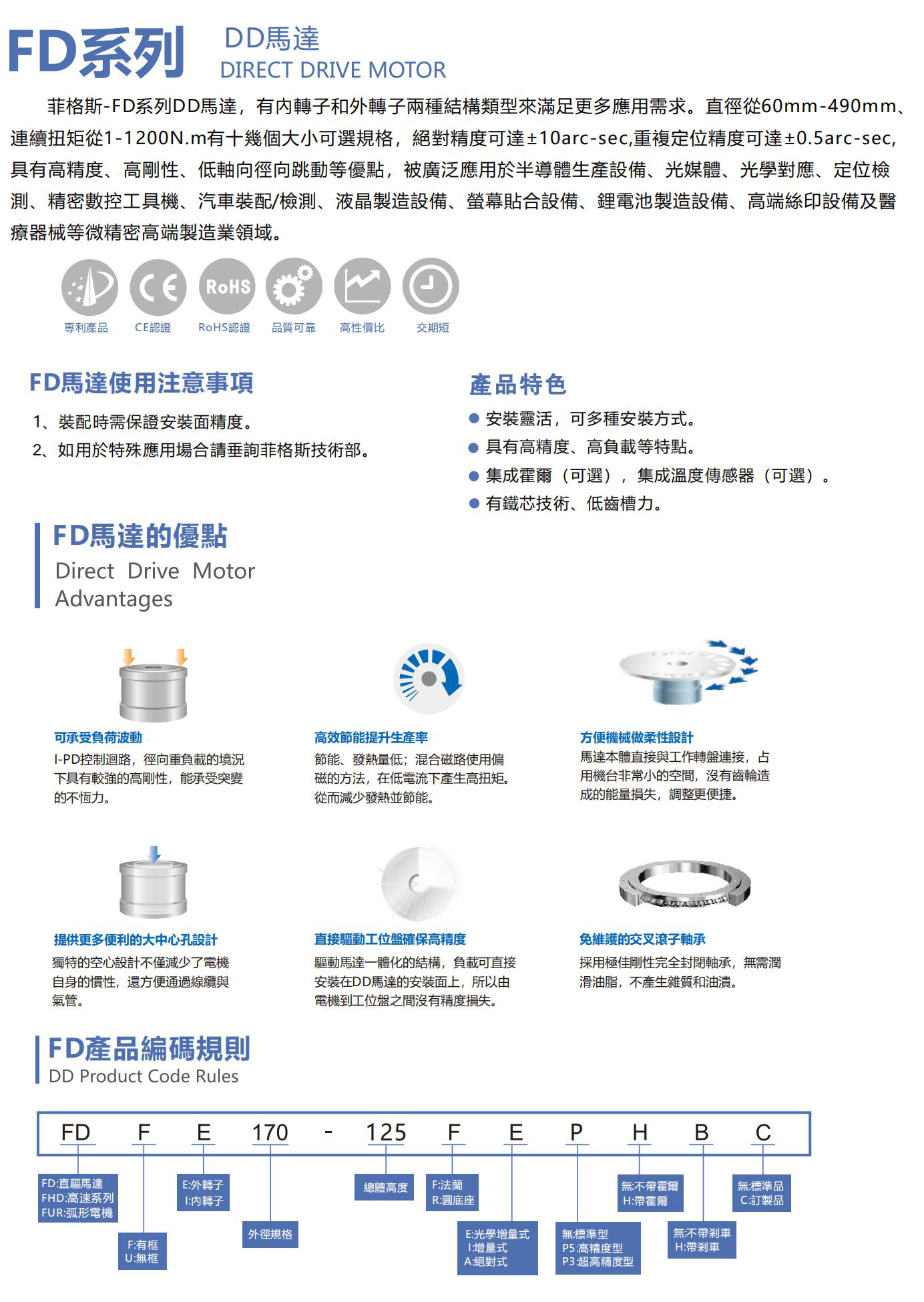 菲格菲FD-DD馬達(dá)直驅(qū)電機(jī)適用于各種自動化場合,具有高精度、高響應(yīng)、高速定位、輸出力矩大、速度穩(wěn)定性高、運(yùn)行安靜等特點(diǎn)。
